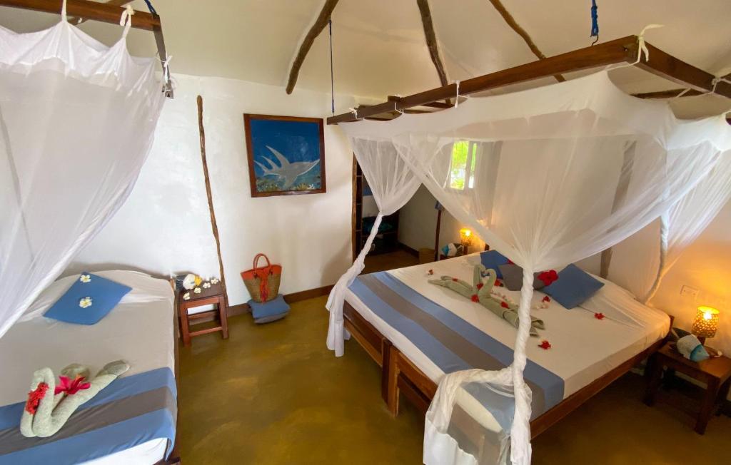 De 7 bungalowkamers van Butiama Marine Camp liggen op een steenworp afstand van het duikcentrum. Alle kamers beschikken over een ensuite badkamer met douche & toilet. Elke kamer is uitgerust met airconditioning & kluisje.