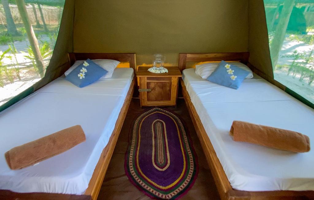 De 16 safaritenten liggen in de tuinen achter het duikcentrum. Deze tenten zijn voorzien van verlichting, een stopcontact, twee eenpersoonsbedden, een ventilator & kluisje. Ze bieden toegang tot gemeenschappelijke toiletten en douches.
