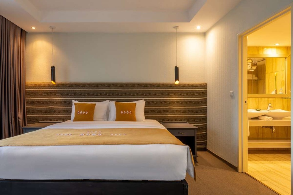 De 112 kamers en suites zijn voorzien van moderne faciliteiten en ruime balkons die uitkijken over de tuin en het zwembad. Alle kamers beschikken over een groot tweepersoonsbed, een ruime badkamer met bad of douche & toilet. Elke kamer is voorzien van airconditioning, Flatscreen-TV, kluisje & wifi.