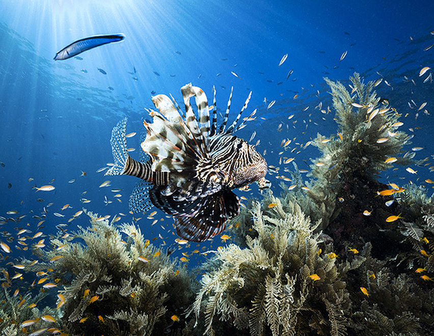 De manta Alfredi zwemt sierlijk tussen de eilanden op zoek naar plankton. Met een spanwijdte tot 3 meter is van deze vriendelijke reuzen de schaduw onder water te zien of de glimp van een vleugeltip boven de oppervlak. Beste kans is bij Trou du Prophéte op Grande Comore & Niumashuwa Bay op Moheli eiland.